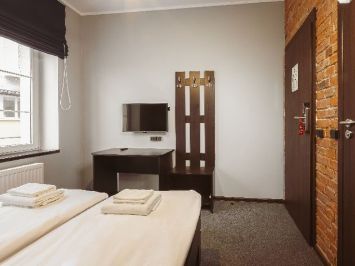 Номер площадью 12,8м² на две персоны расположен на 1 этаже отеля с большим окном, выходящим на ул. Коперника с видом на Кафедральный собор.